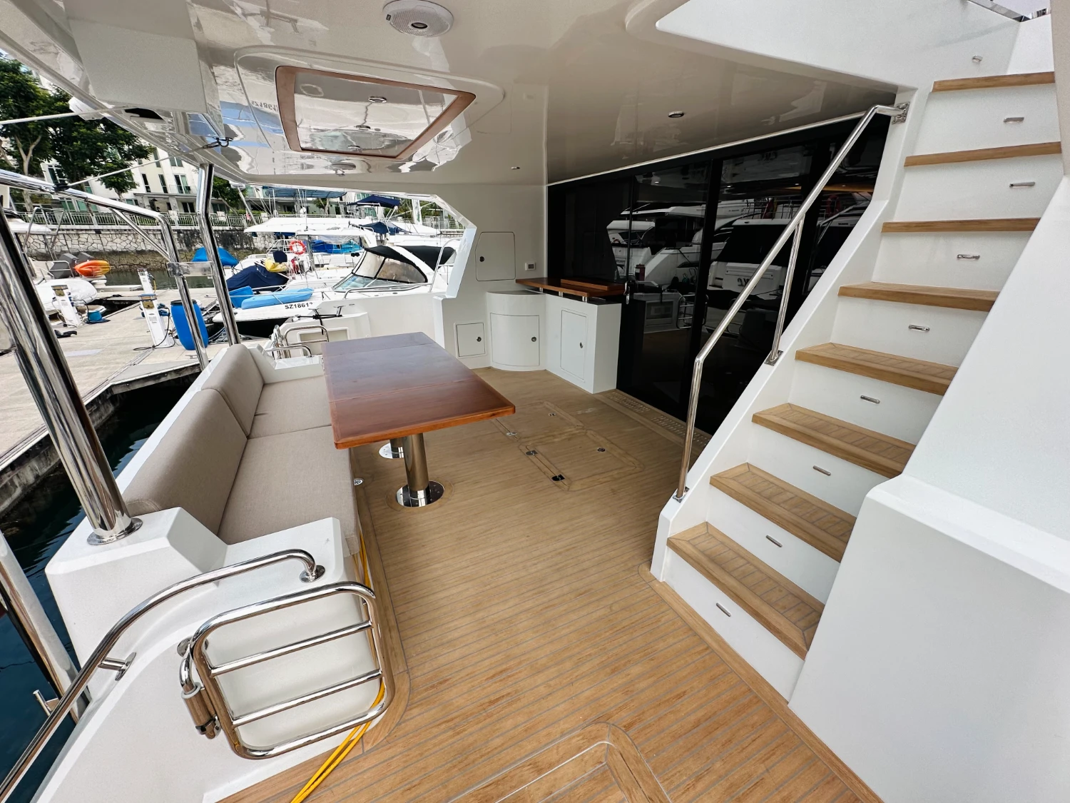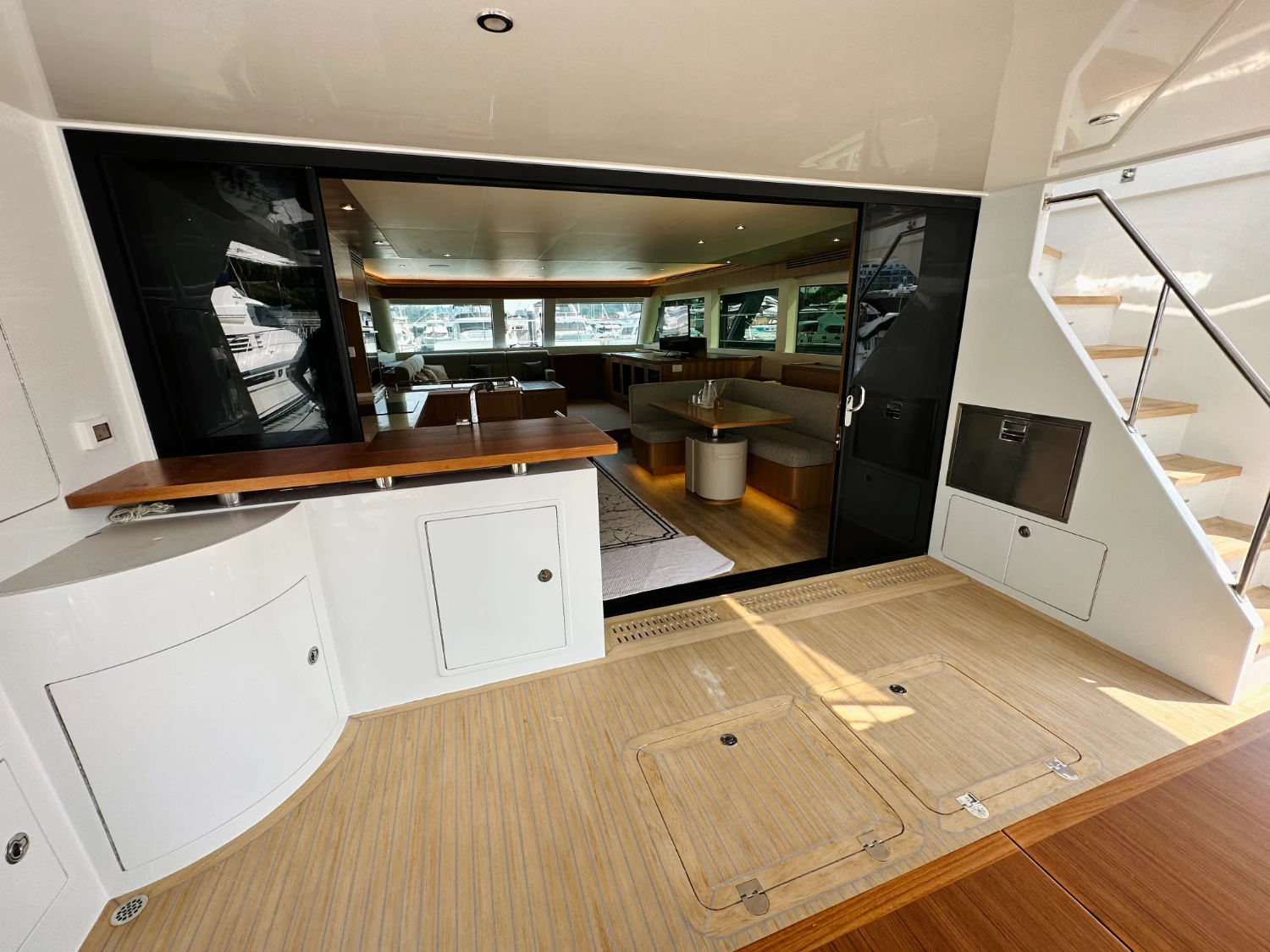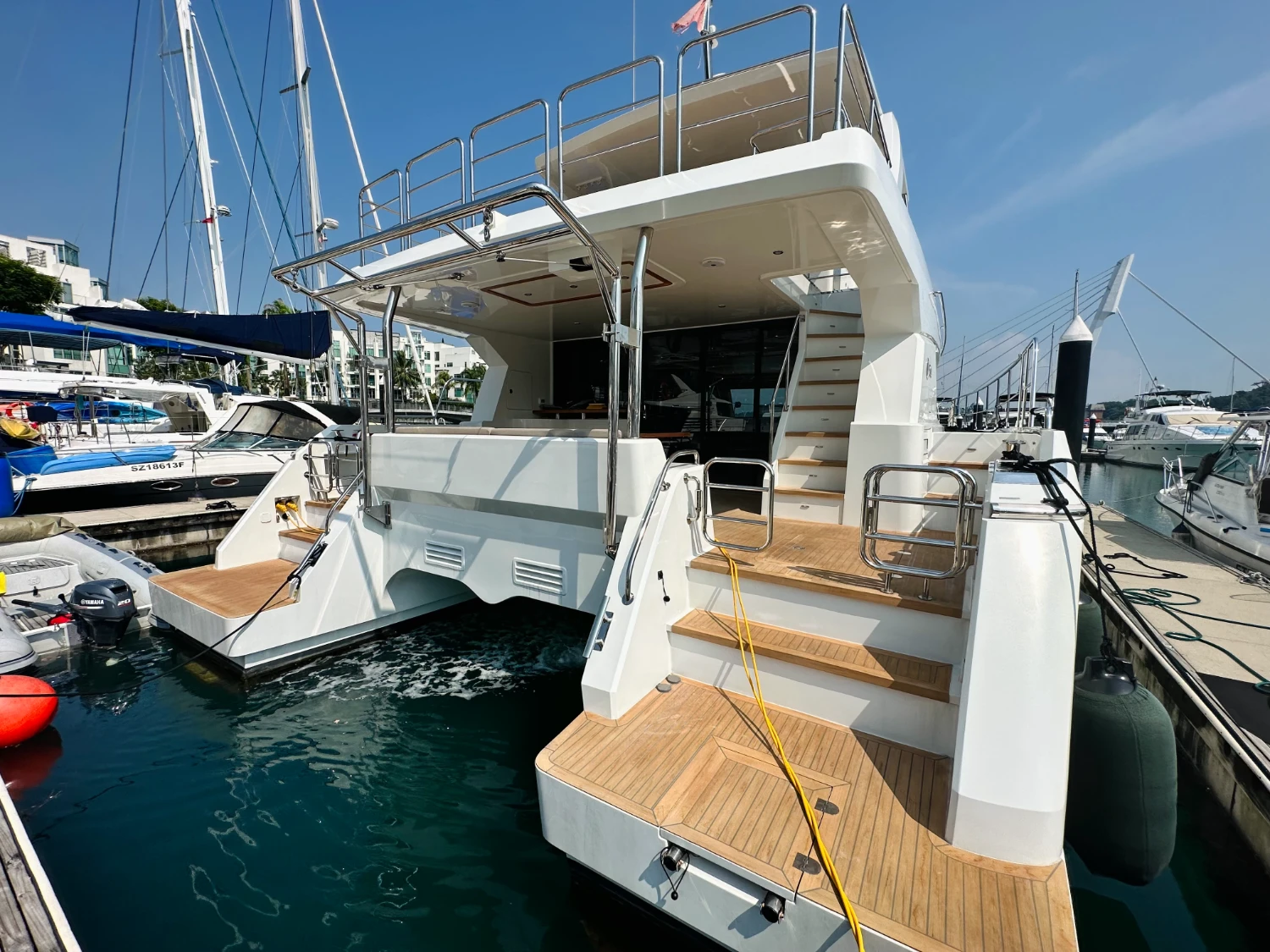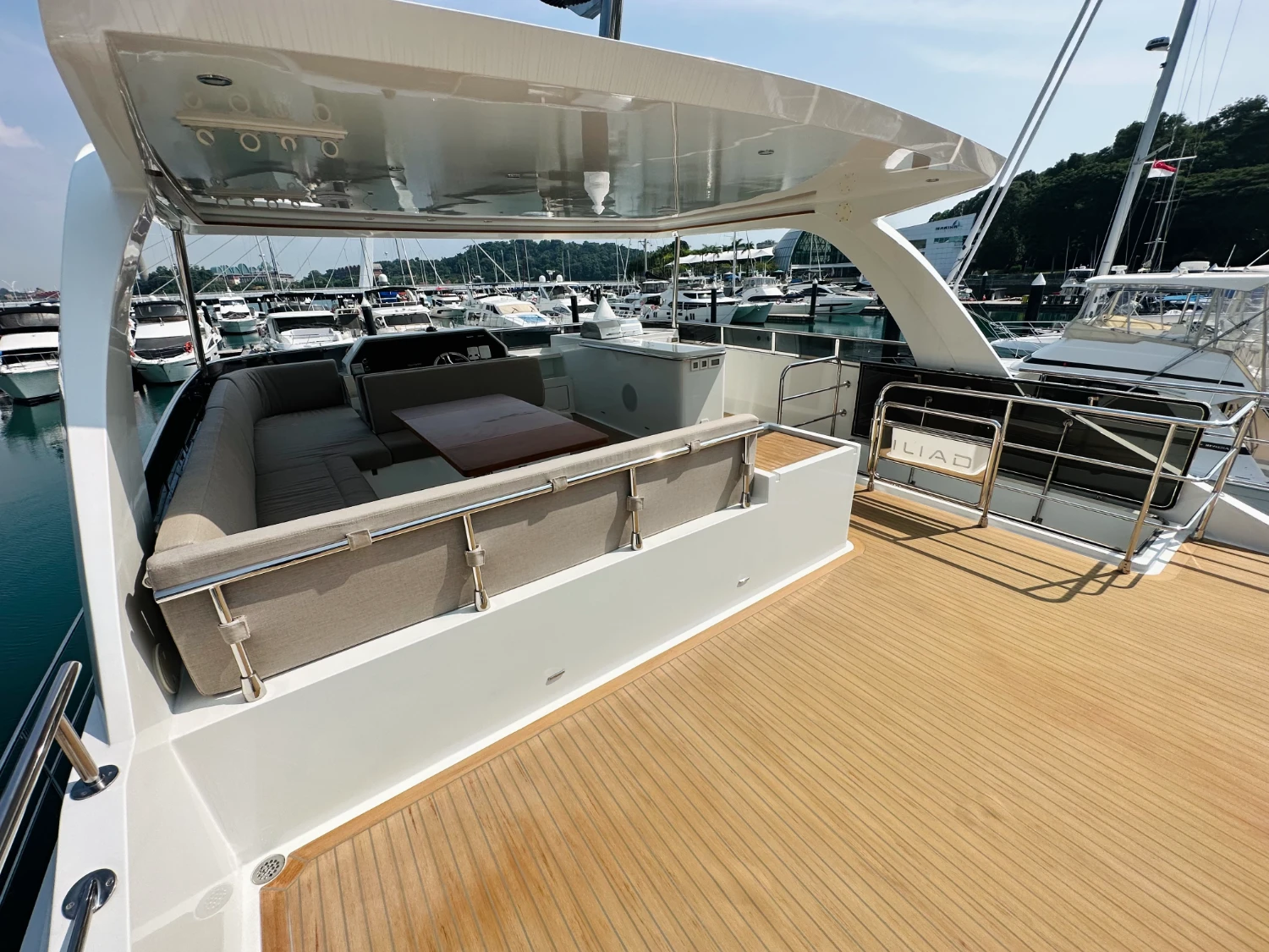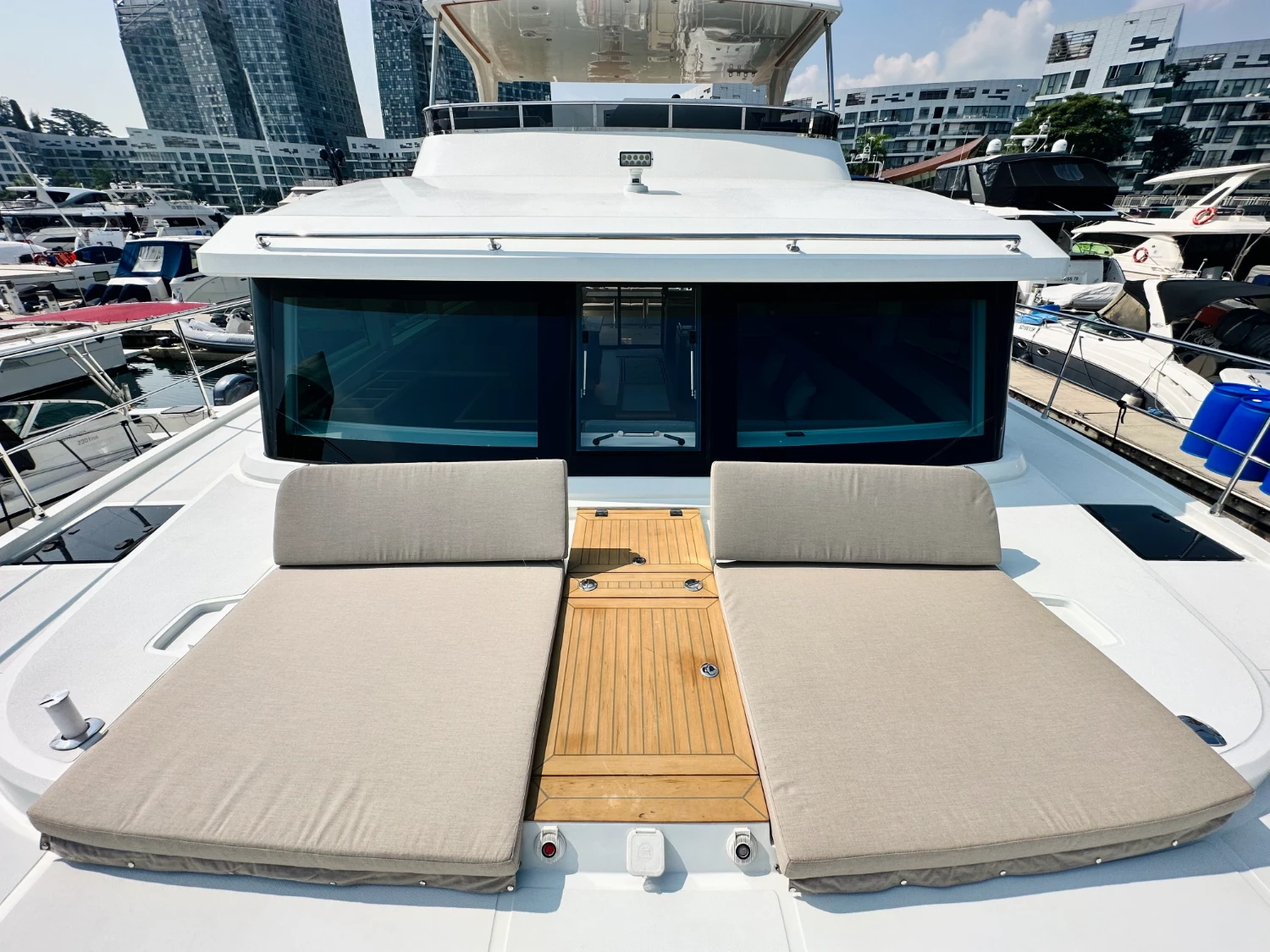 Designed for comfort and style, this 50FT Iliad yacht features three beautifully appointed cabins, a spacious, sheltered cockpit, an inviting bow terrace, and a stunning flybridge perfect for sunset views. Whether you’re entertaining guests or savoring quiet moments with loved ones, the Iliad delivers a seamless blend of sophistication and serenity—your private oasis on the water.